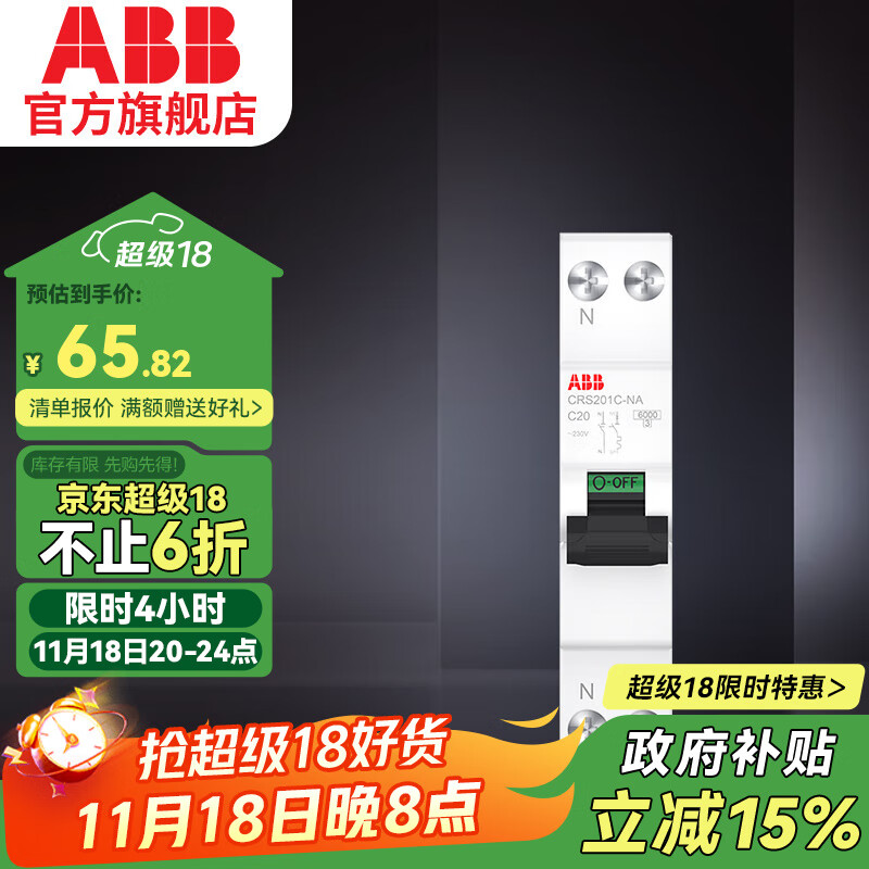 ABB断路器 新一代CR系列窄体1P+N空气开关6000安高分断 DPN双进双出 1P+N 20A