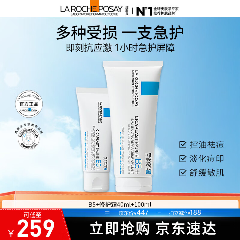 理肤泉全新B5+修复霜100ml+40ml 屏障修护面霜去痘淡化痘印护肤品 B5+修复霜100ML+40ML