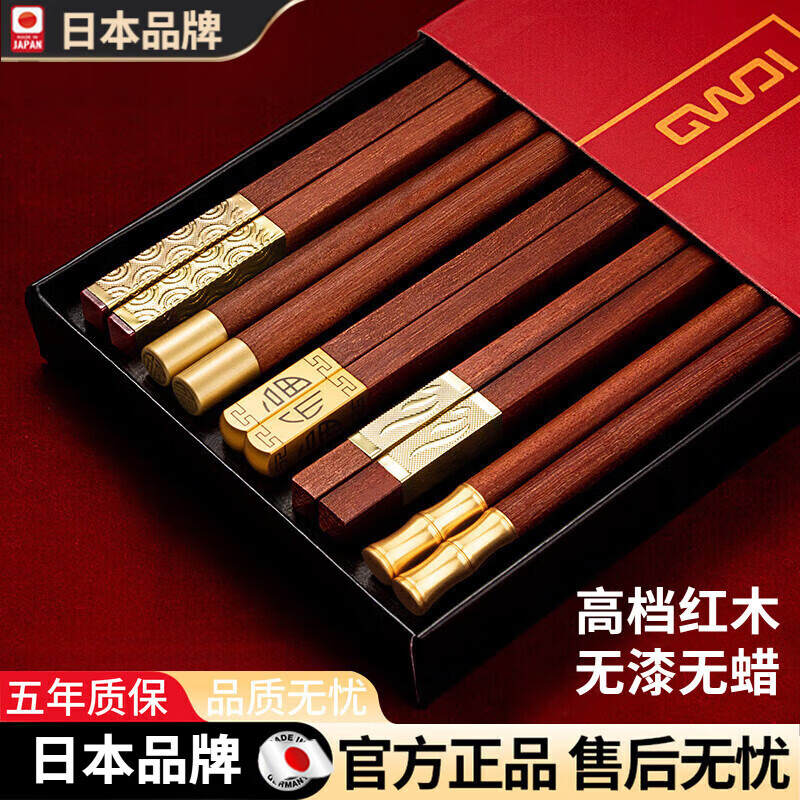TYZAYR日本2026新款家用筷子实木一人一筷筷子家庭分餐乔迁 五谷丰登【5双礼盒装-24.9cm】