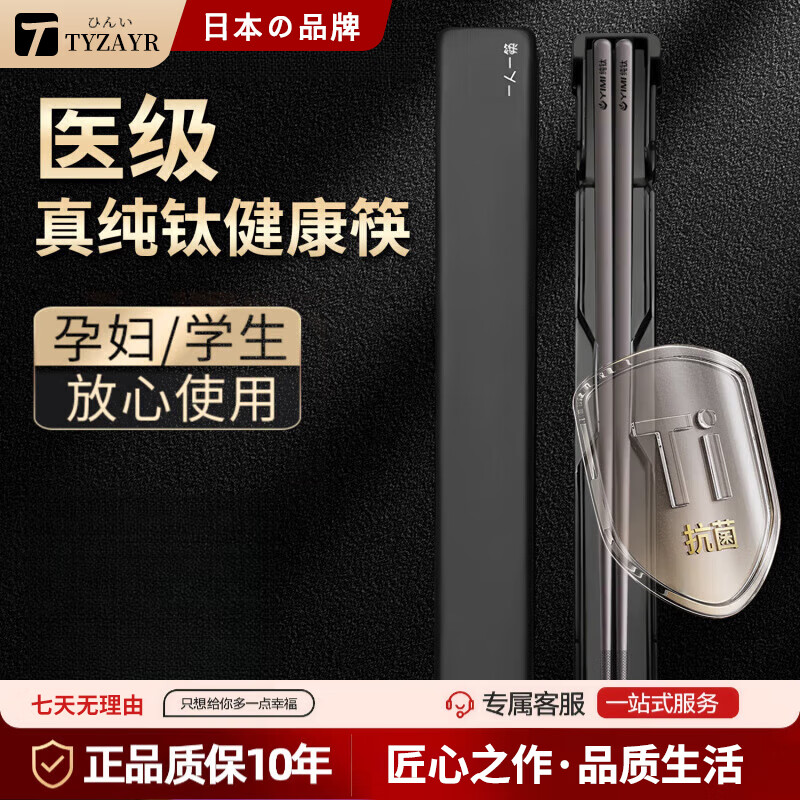 TYZAYR日本纯钛筷子单人装便携收纳盒餐具一人用家用钛合金 1双-纯钛筷子【黑色便携装】圆尾款|纯度≥99.6