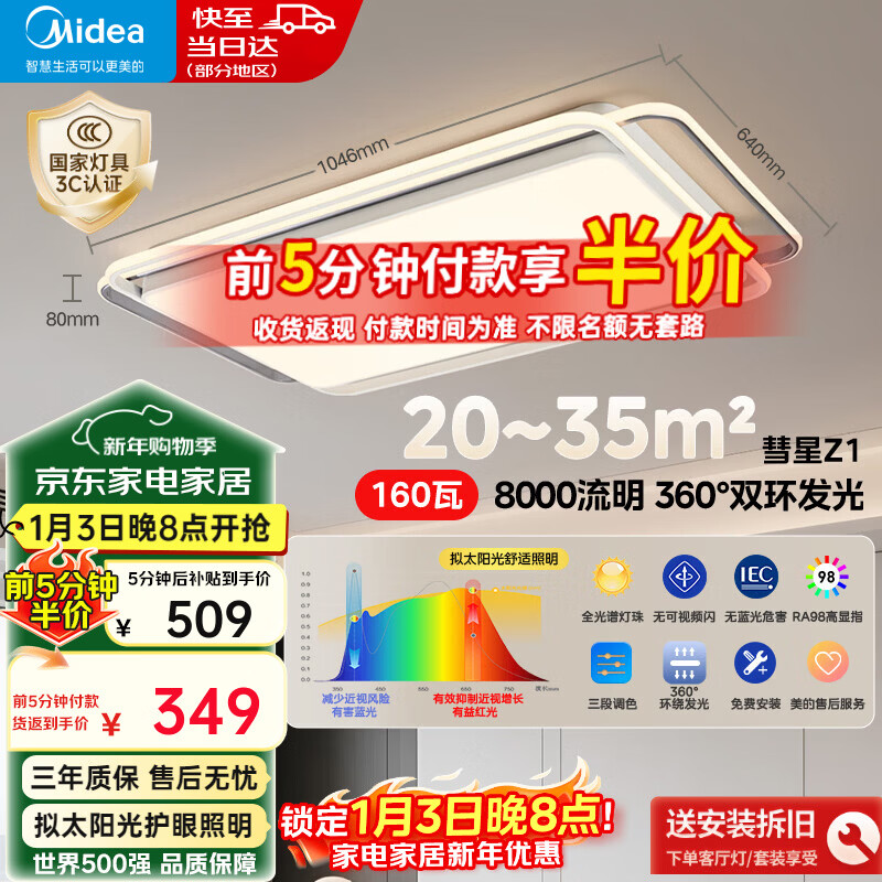 美的(Midea)吸顶灯客厅大灯北欧造型客厅灯主灯护眼卧室房间灯具大全彗星Z1 三段调色|160W客厅灯|全光谱