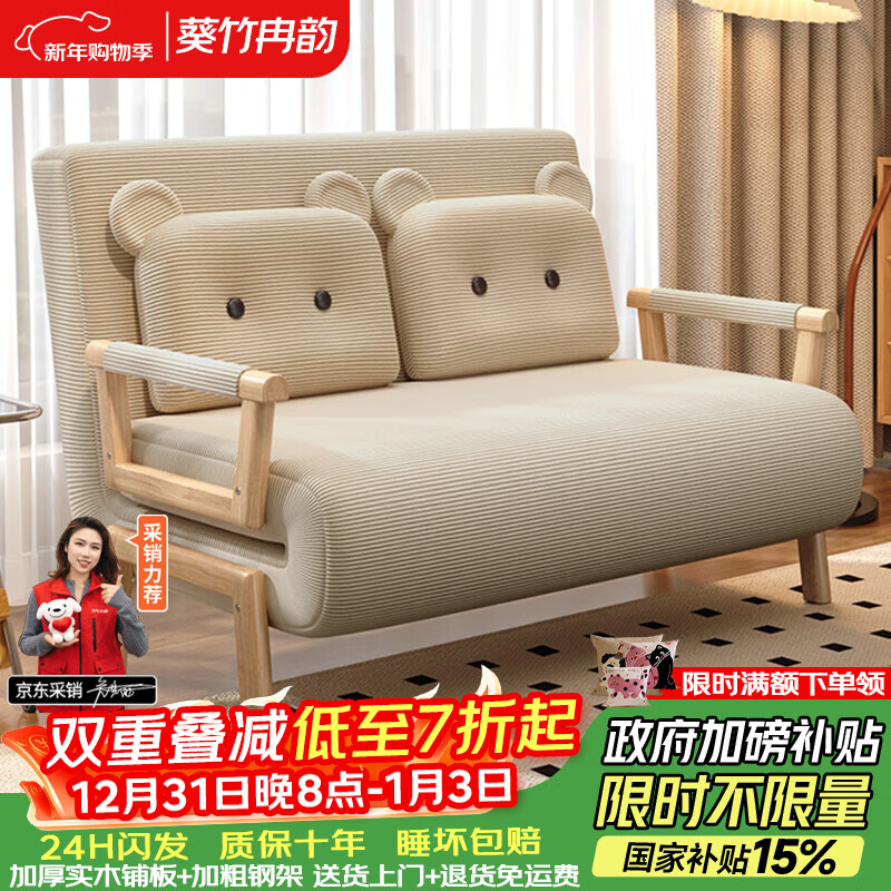 葵竹冉韵折叠沙发床一体两用2025新款家用多功能简约单双人伸缩沙发折叠床 120CM卡其色灯芯绒 高回弹海绵 靠背可调节