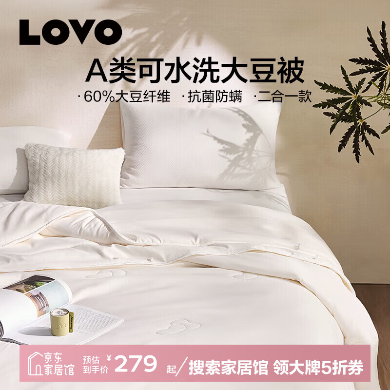 LOVO罗莱生活 被子大豆春秋被抗菌防螨单双人秋冬季加厚保暖纤维被芯 【60%大豆+A类抗菌防螨】二合一 150*215cm