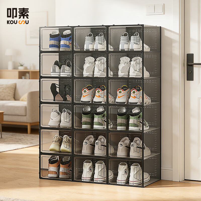 叩素透明鞋盒抽屉收纳盒大号鞋架鞋子神器收纳柜鞋柜家用储物盒8个 44码内鞋盒 透黑8个装