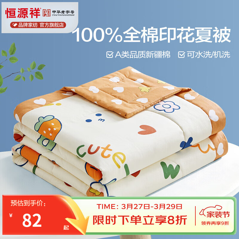 恒源祥 空调被100%棉花夏季被子学生宿舍单人透气亲肤薄被可机洗 【里外全棉+A类品质】萝卜兔 150*200cm【夏被单件】