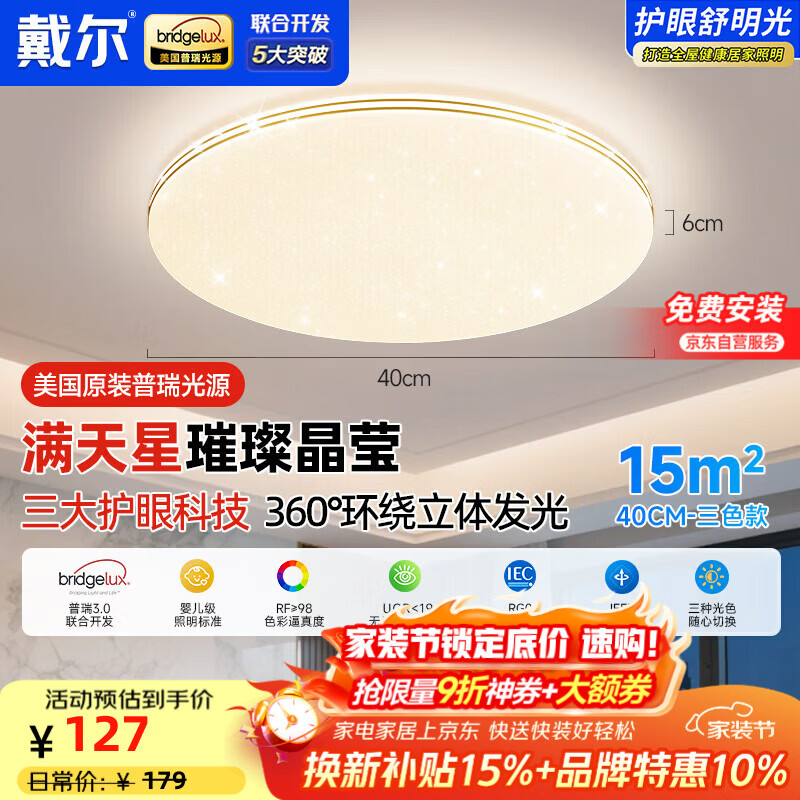 戴尔led吸顶灯现代简约护眼超薄书房卧室中山灯具满天星轻奢风包安装