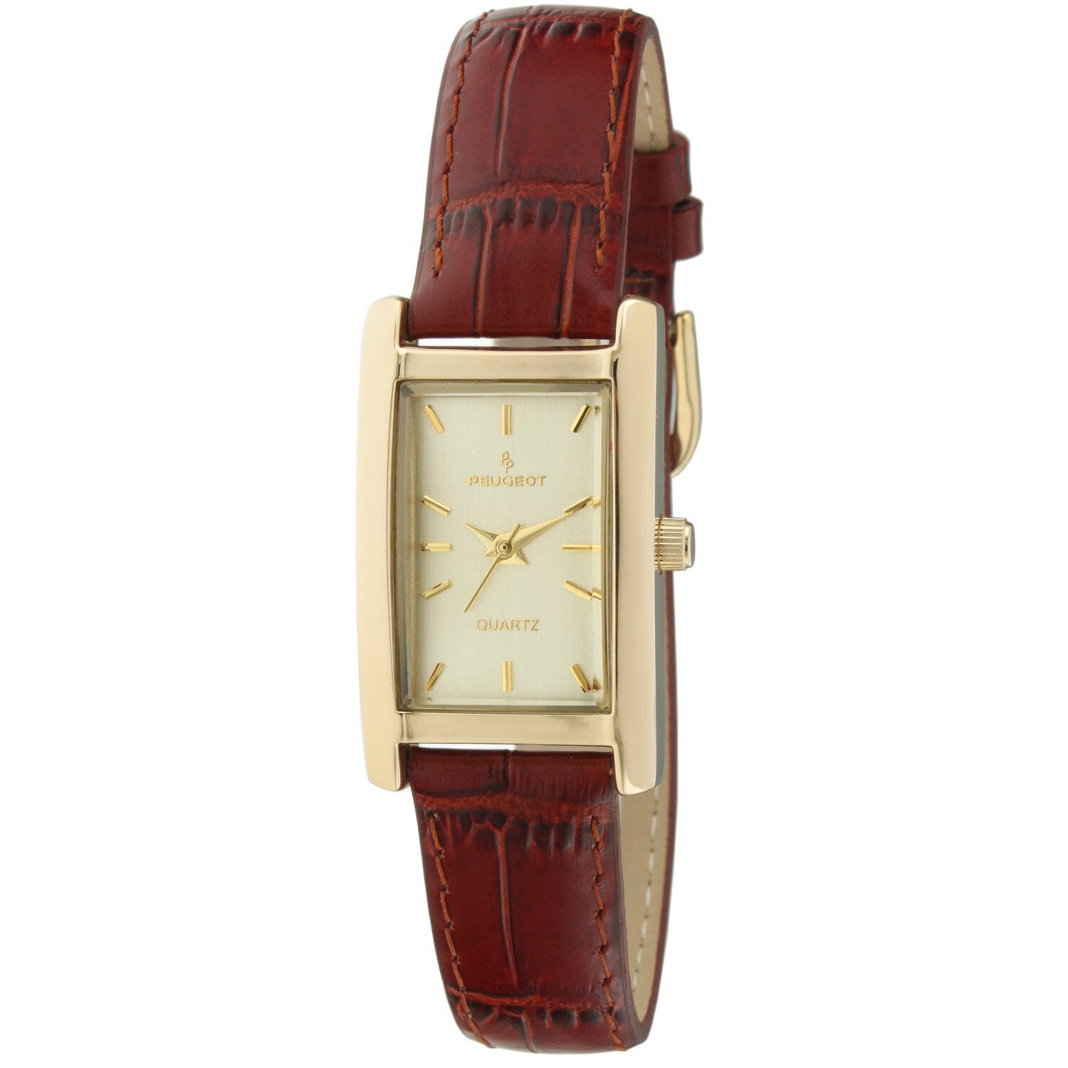 PEUGEOT 14K镀金女表 矩形坦克 皮革表带 Brown small