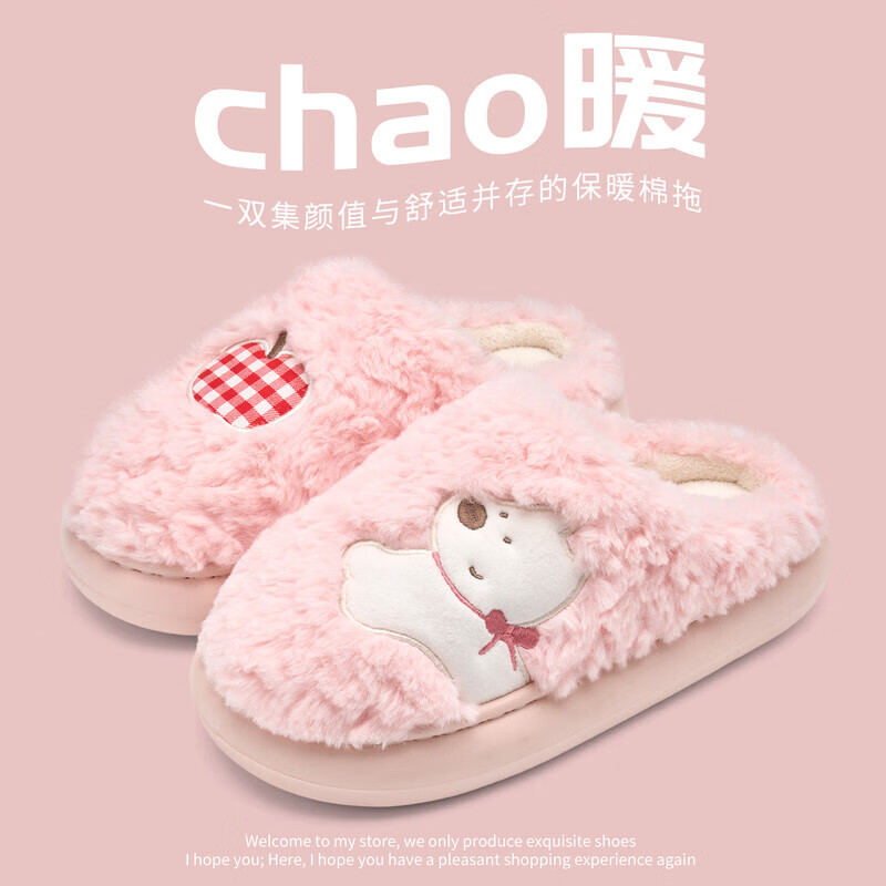 DEATKN德国小狗棉拖鞋女款可爱冬季2025新款室内保暖毛绒拖鞋家用男士秋 柔糖粉 38 -39【适合37-38码】