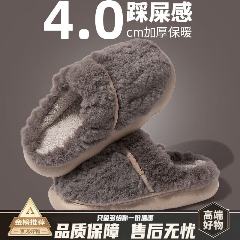DEATKN德国厚底秋冬棉拖鞋男女款室内居家2025新款保暖加绒毛绒踩屎感 棕色 39-40 40 -41(适合脚)
