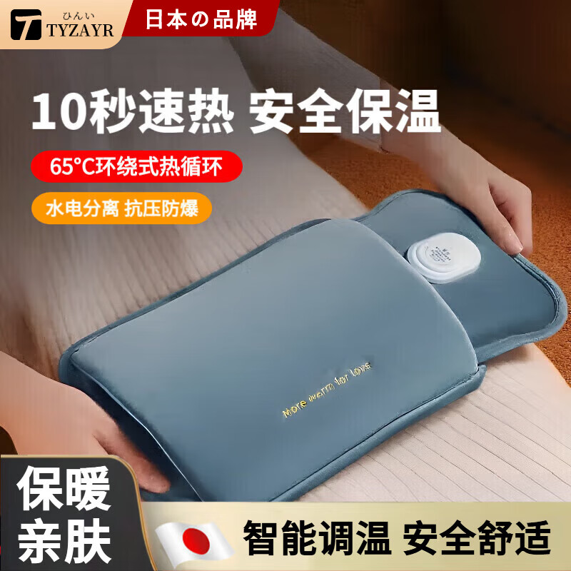 TYZAYR日本厨房小工具 无调温-雾霾蓝【绒面热水袋+锁温布套+口袋充电器】