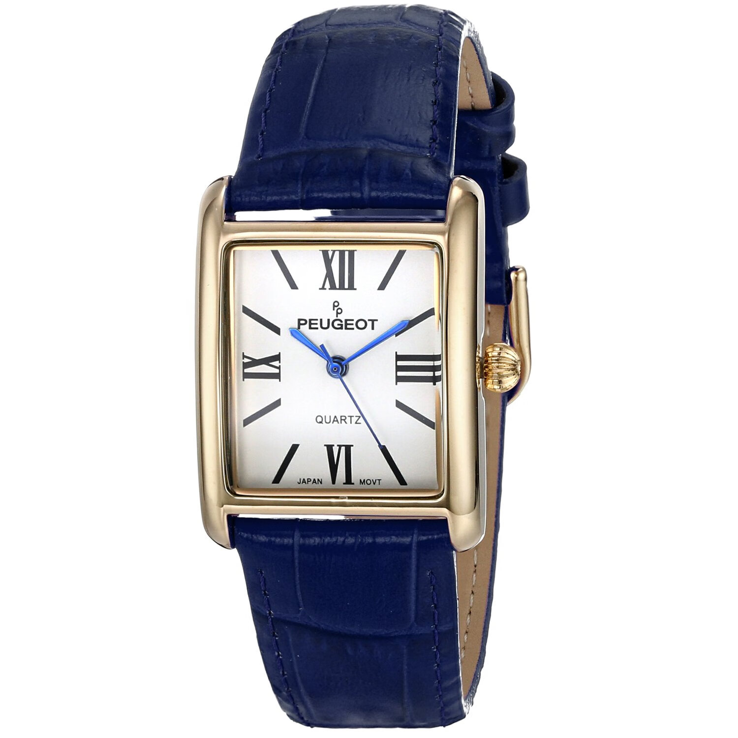 PEUGEOT 女式 14K 镀金背心皮革正装手表罗马数字表盘 Blue 26mm x 32mm