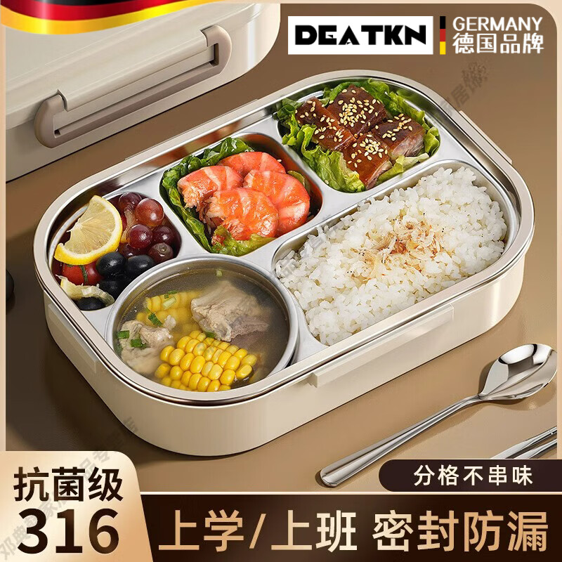 DEATKN德国316不锈钢保温便当盒便当盒真空保温桶饭盒学生送饭户外餐盒 316_【带餐具+汤碗】4格