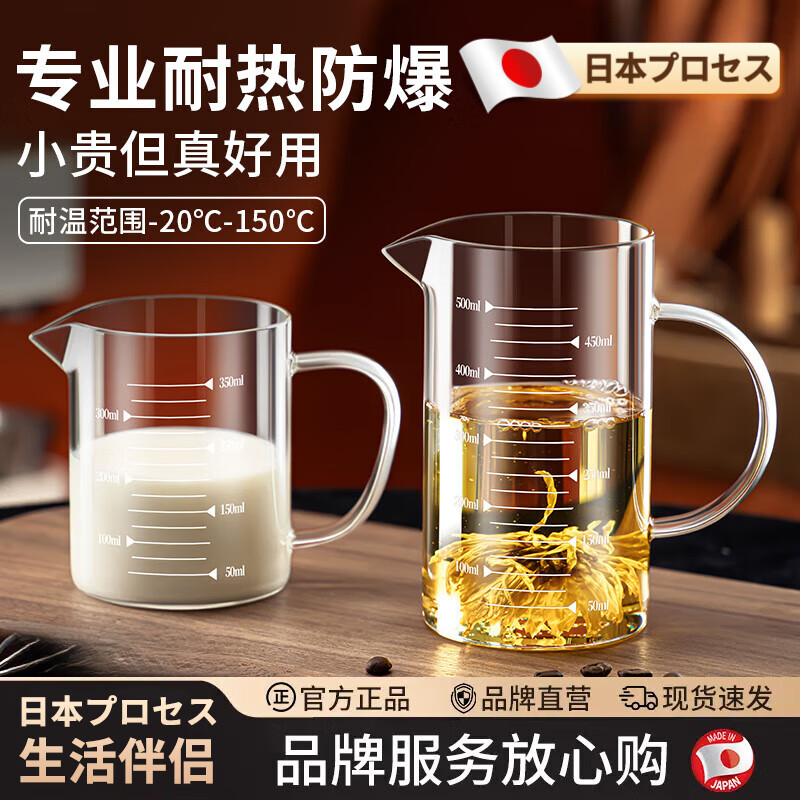 AILUKI日本玻璃量杯带刻度食品级厨房用杯打蛋液耐高温烘焙专用碗嘴杯子 250ML耐热高硼硅玻璃量杯