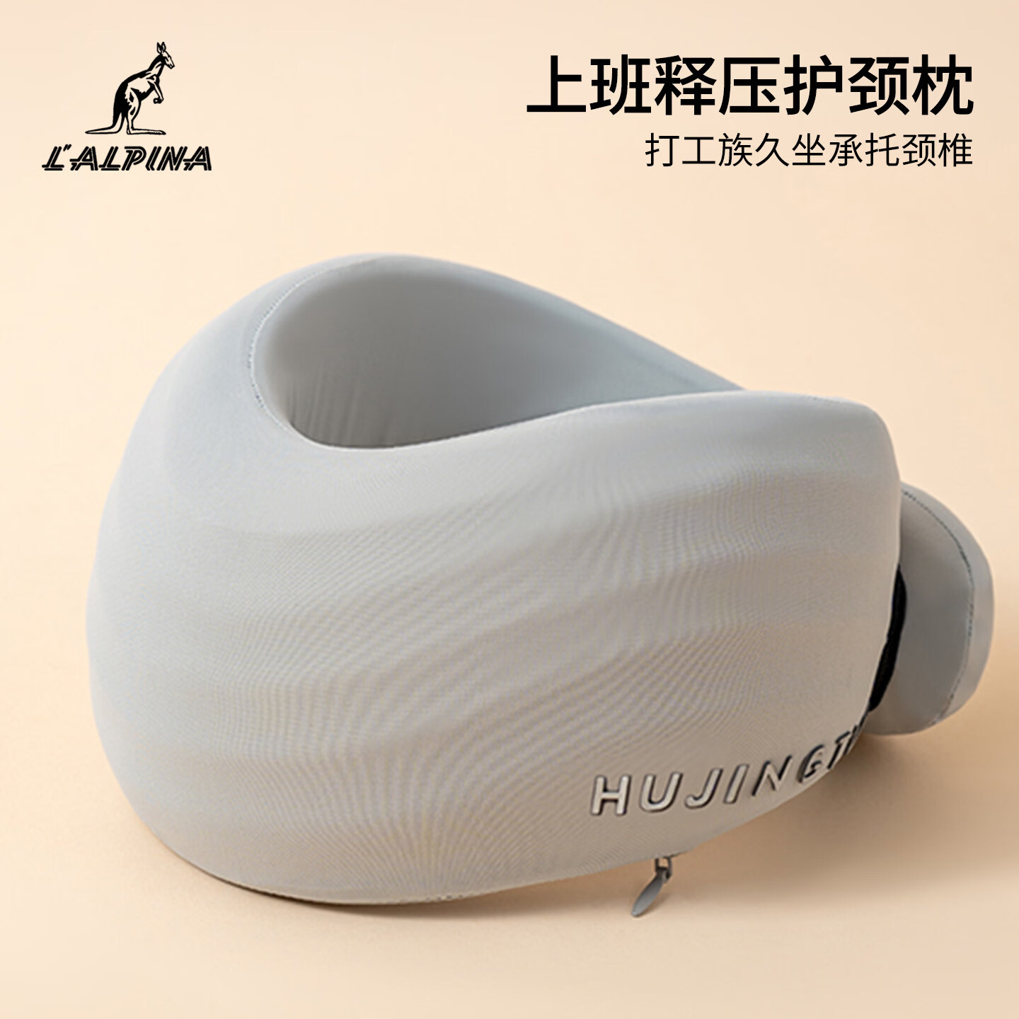 阿尔皮纳袋鼠记忆棉u型枕便携旅行护颈椎飞机长途高铁睡觉神器靠颈托脖枕颈枕 可拆洗U型护颈枕-浅灰 【送同款收纳袋】