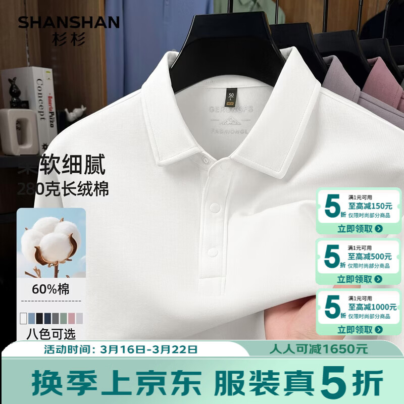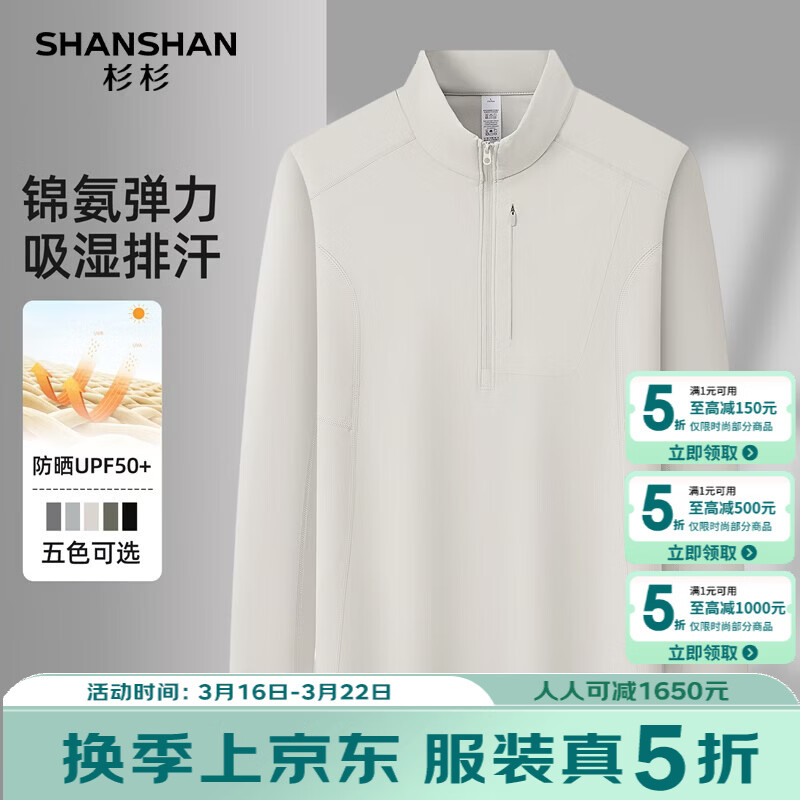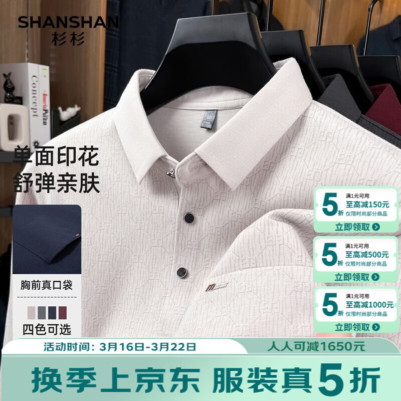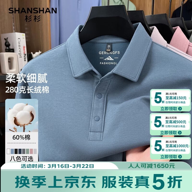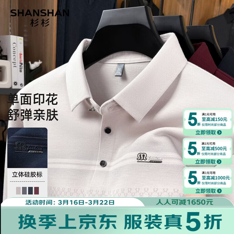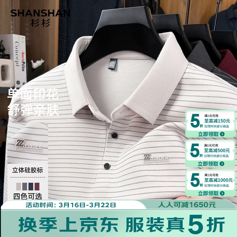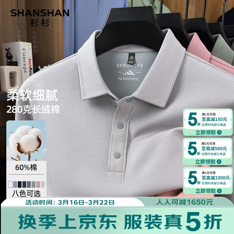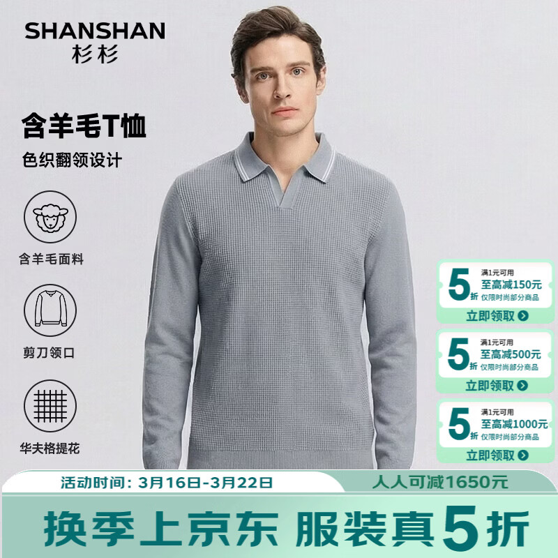 SHANSHAN杉杉男士长袖T恤2026春季新款翻领休闲百搭上衣商务内搭针织衫男 浅灰色 S /16