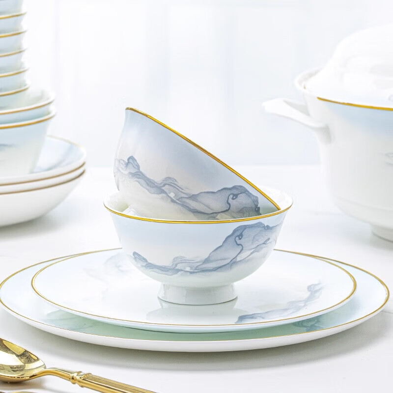 精缔陶瓷JINGDI景德镇2025新款高颜值碗碟套装家用中式陶瓷餐具套装碗盘筷乔迁 4.75英寸饭碗