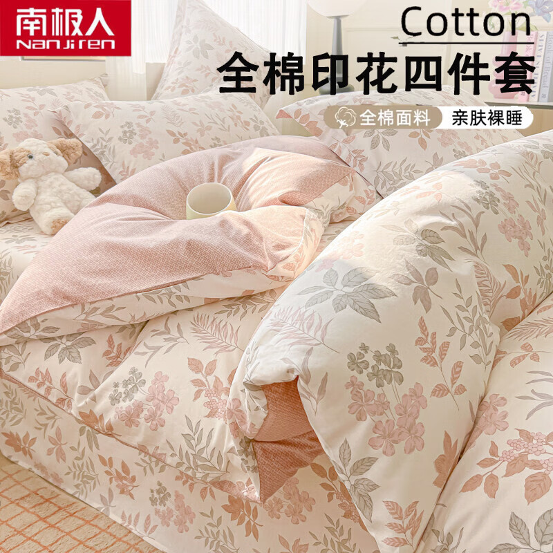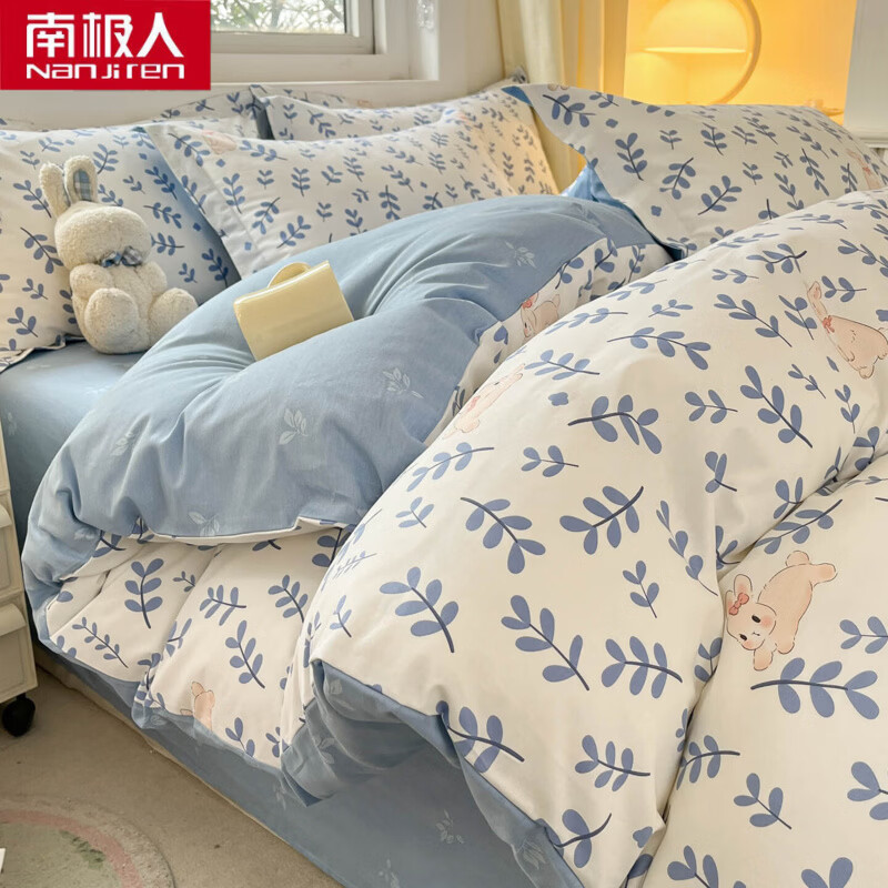 南极人(Nanjiren)床上四件套纯棉被套家用床单被罩四件套学生宿舍单人床笠三件套 A兔影 【纯棉面料 柔软舒适】 1.8m 床单款 四件套-被套200*230cm
