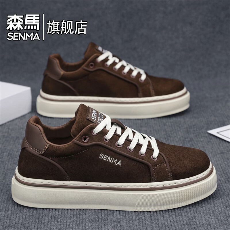 森馬男鞋2026年新款夏季韩版百搭休闲低帮板鞋青少年防滑厚底运动潮鞋 棕色【基础款】 39 标准码数/现货秒发