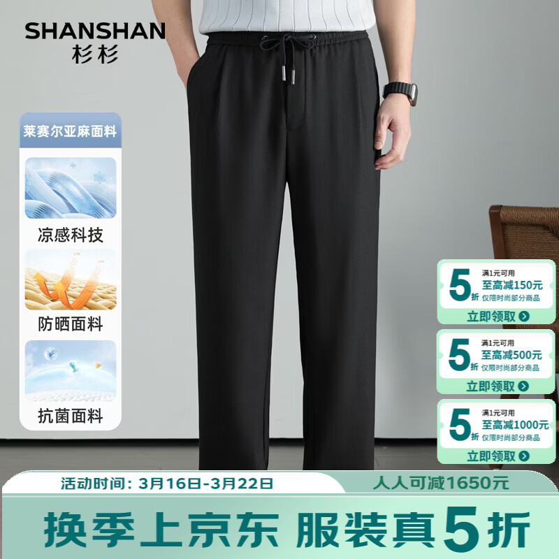 SHANSHAN杉杉【10A抗菌】男士休闲裤夏季新款简约日常通勤长裤 黑色 M /165