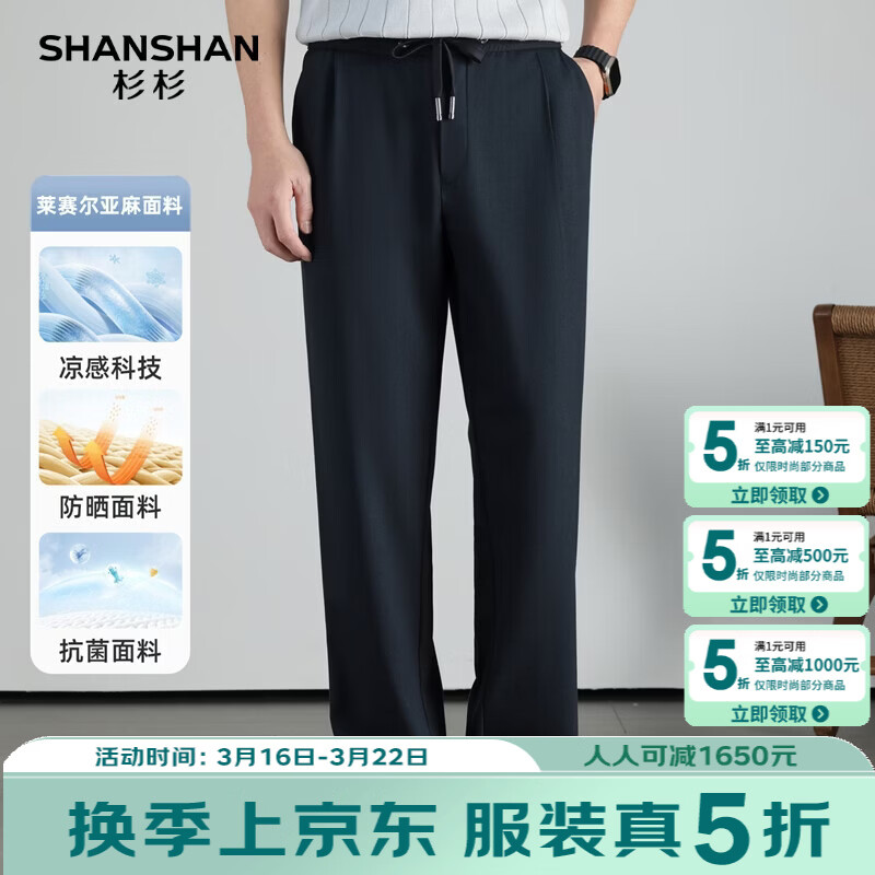 SHANSHAN杉杉【10A抗菌】男士休闲裤夏季新款简约日常通勤长裤 藏青色 M /165