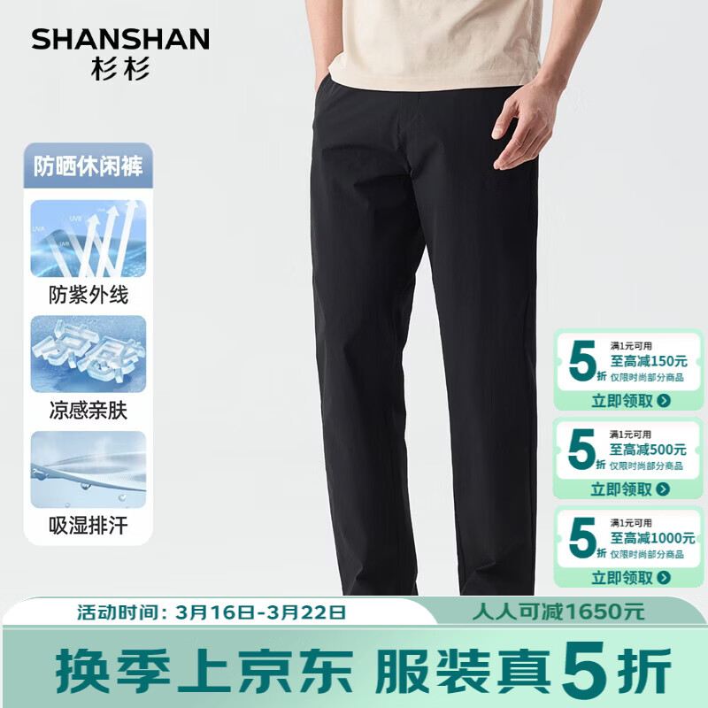 SHANSHAN杉杉【防晒+防蚊】男士休闲长裤夏季轻薄凉感运动直筒通勤裤 黑色 M /170
