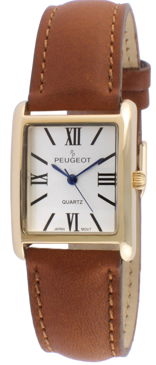 PEUGEOT 女式 14K 镀金背心皮革正装手表罗马数字表盘 Brown 26.0毫米