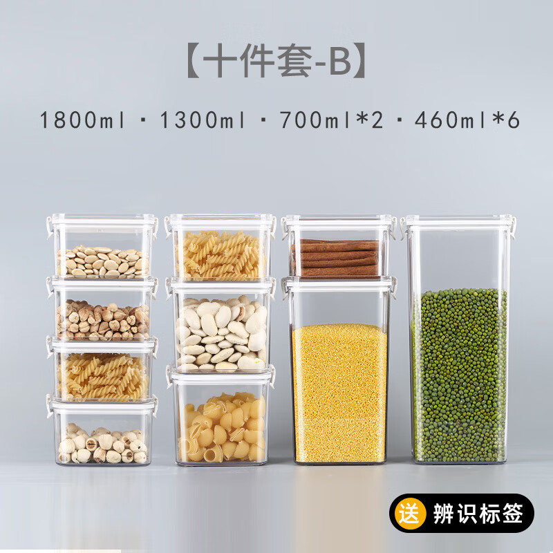 WCZ德国密封罐五谷杂粮厨房收纳食品级干货透明塑料罐盒子零食茶叶储 【新款特惠】升级款杂粮罐-精致白10件套