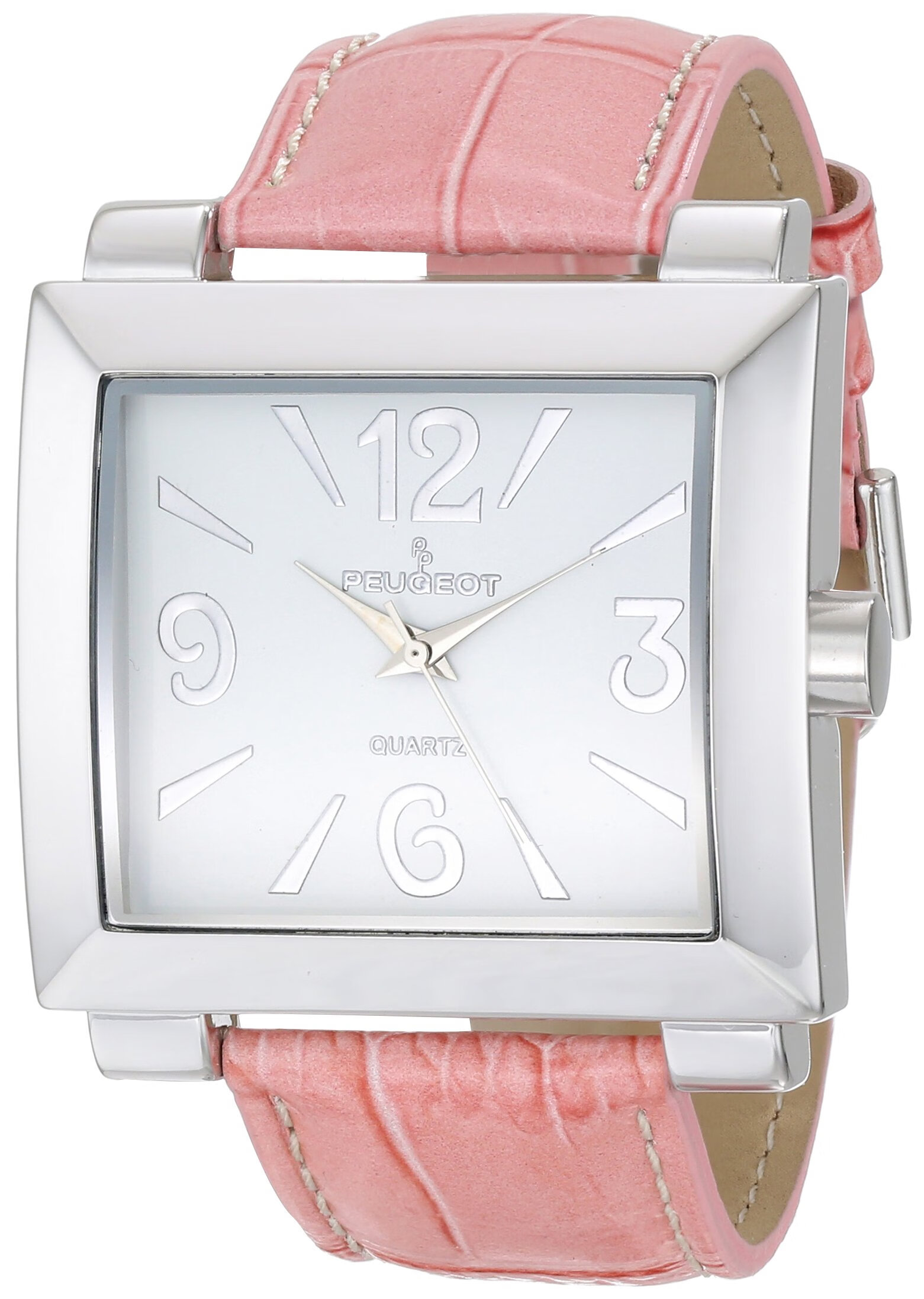 PEUGEOT 女式皮革易读大脸手表 Pink 6.0-8.0 inches