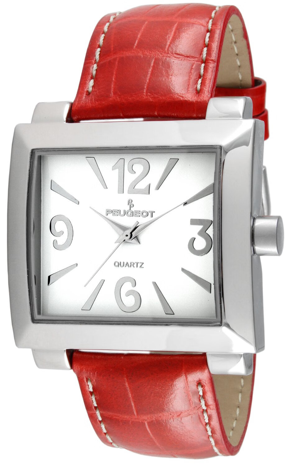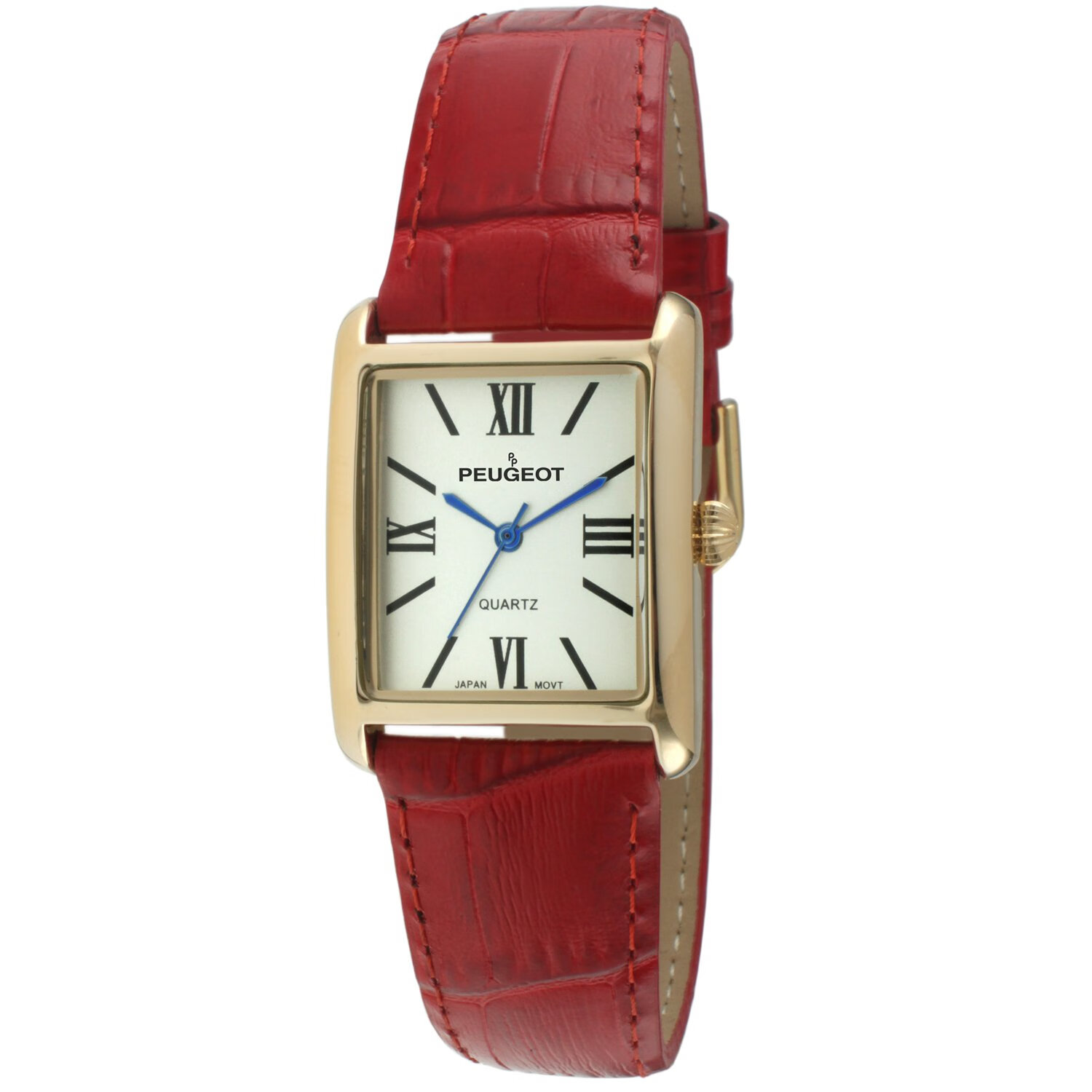 PEUGEOT 女式皮革易读大脸手表 Red large