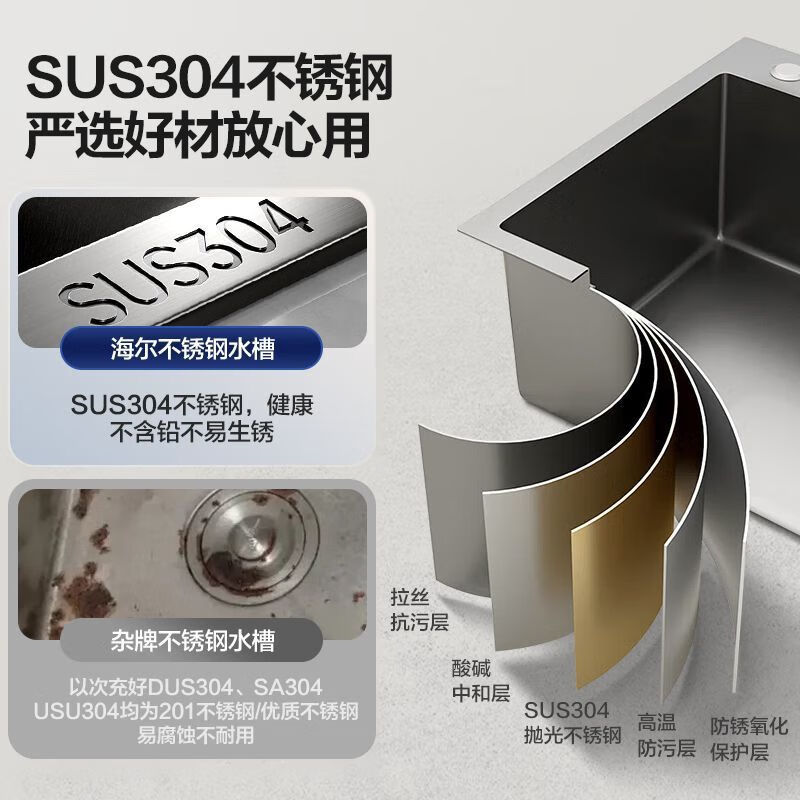 海尔加厚304纳米不锈钢水槽抽拉龙头厨房菜盆洗碗池大单槽手工槽 特殊定制