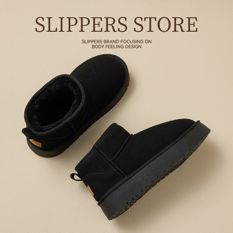 FZT厚底雪地靴女款2025新款冬季加绒加厚皮毛一体保暖防滑棉鞋女外穿 黑色【主图款】 35 (内长22.5cm)