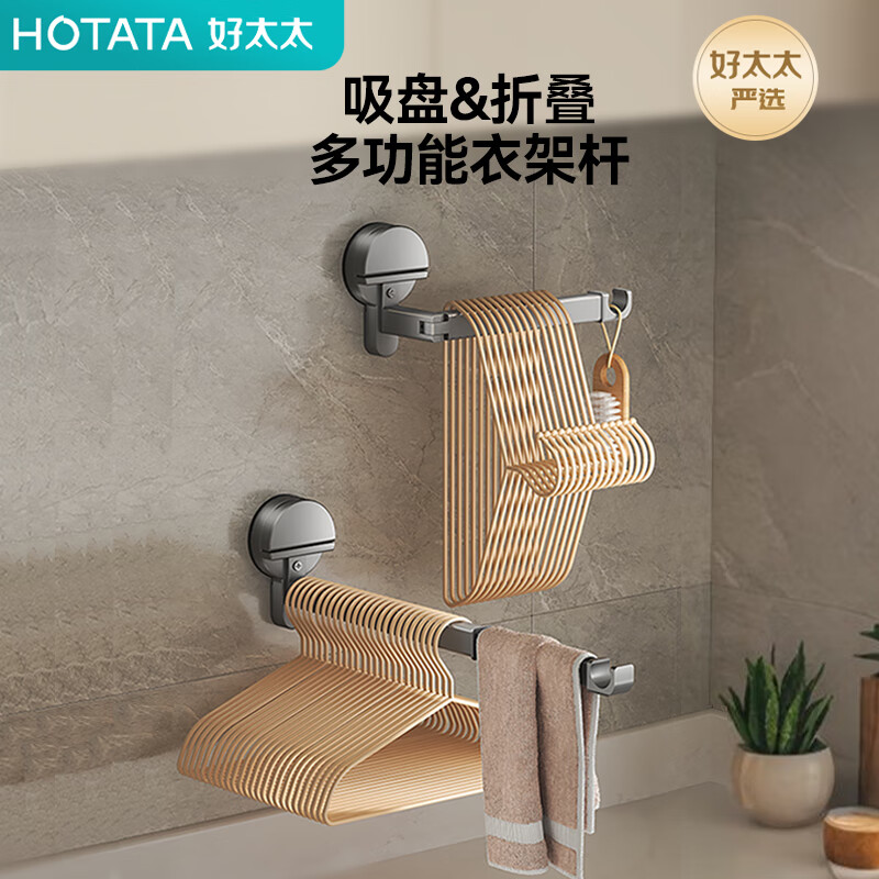 好太太(Hotata)晾衣杆小型家用吸盘可折叠伸缩多功能收纳杆厨房浴室阳台晾衣架 【单只装】小型吸盘晾晒收纳杆