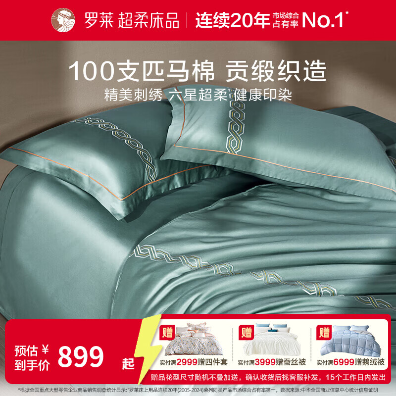 罗莱家纺100支全棉床上四件套 高档酒店风匹马棉纯棉春夏床品 礼盒装 【100支匹马棉】马尔萨拉公寓 绿色 1.5米床 床单款 (被套200*230cm)