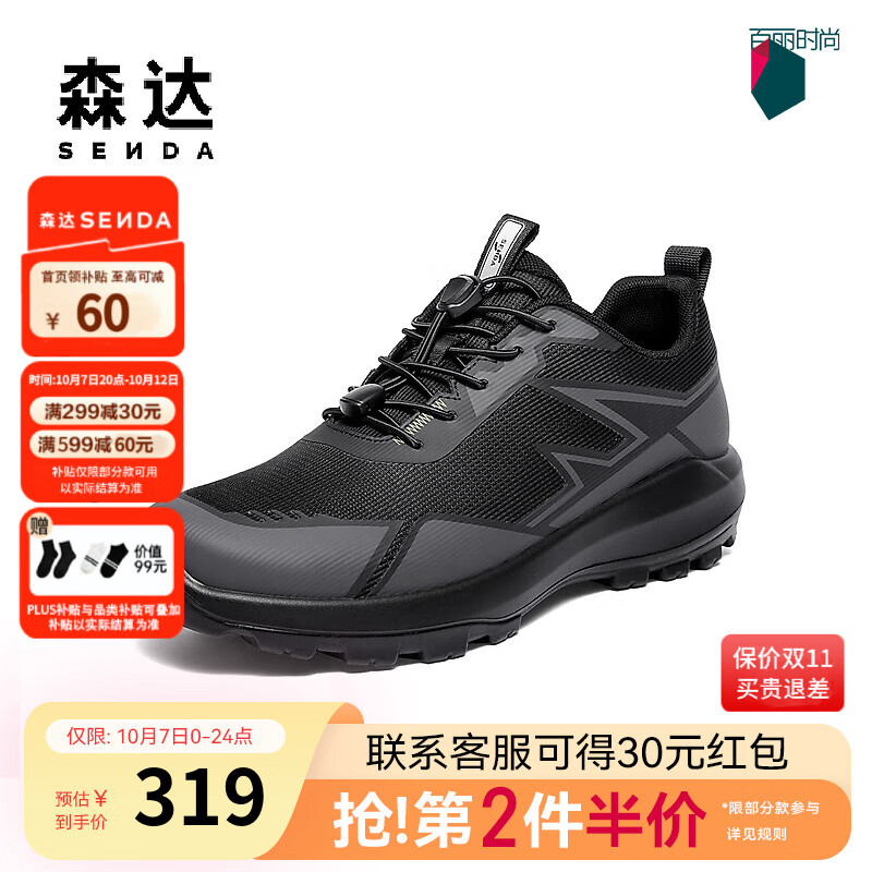 森达健步鞋男2025秋季新款商场同款户外运动休闲鞋AL011CM5 黑色 40