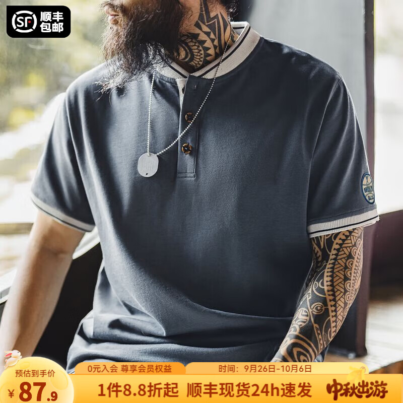 马登工装美式复古棒球领亨利衫t恤男重磅纯棉正肩短袖衣服男装夏季 熔岩灰 【男士新款/轻奢高级感】 S