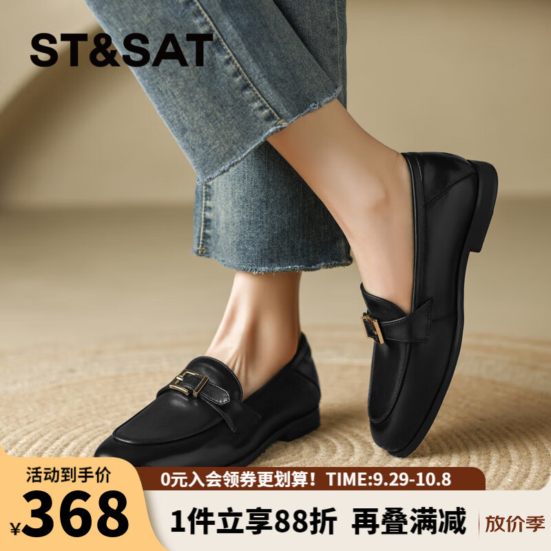 星期六(St&Sat)复古真皮乐福鞋女鞋2025新款金属扣英伦牛皮软底单鞋SZSSD1111P55 黑色 37