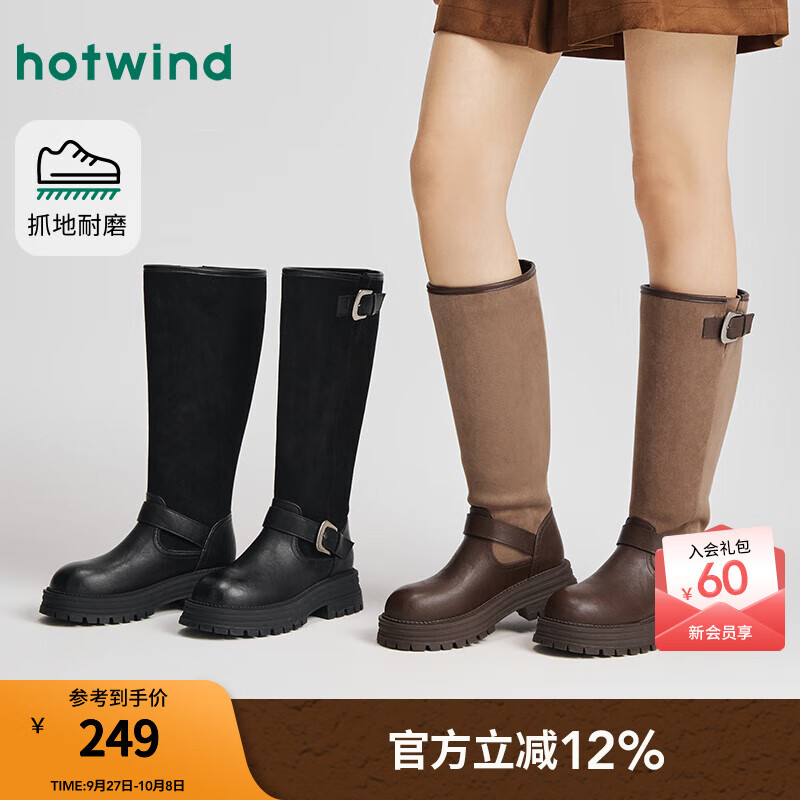 热风厚底骑士靴女2025年冬季新款复古休闲长筒靴子百搭时装靴女鞋 01黑色 38