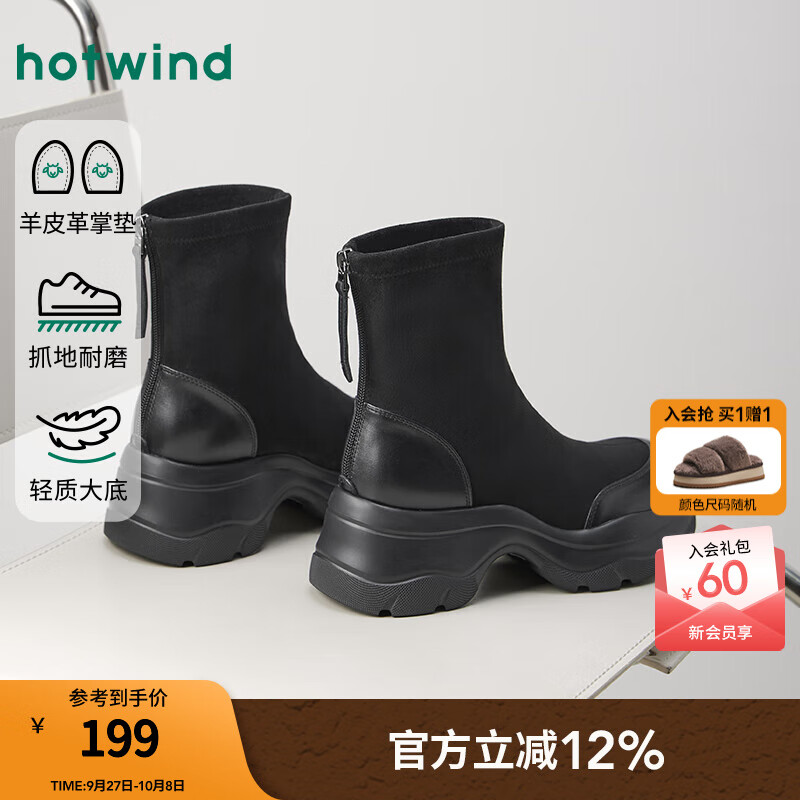热风厚底时装靴女2025年冬季新款棕色复古短靴小个子增高女靴子 01黑色 (预售10.12发货) 38