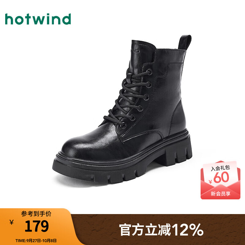 热风黑色马丁靴女2025年秋季新款增高厚底短靴百搭工装靴子女鞋子 01黑色 36