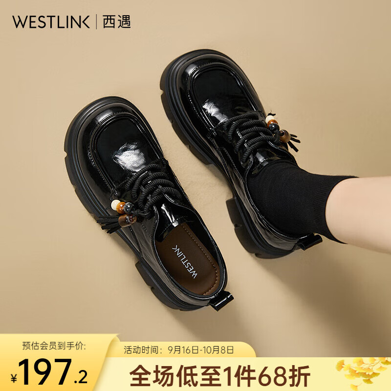 西遇黑色乐福鞋女2025新款秋季复古串珠系带单鞋小个子增高小皮鞋 黑色 (预售10月16) 35 (225)