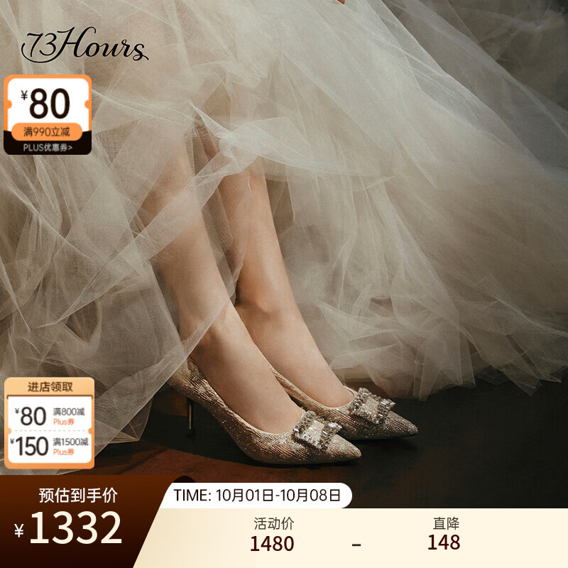 73Hours女鞋钟爱熔金2025秋季新款尖头细跟蕾丝婚鞋气质高跟鞋女 金色 37