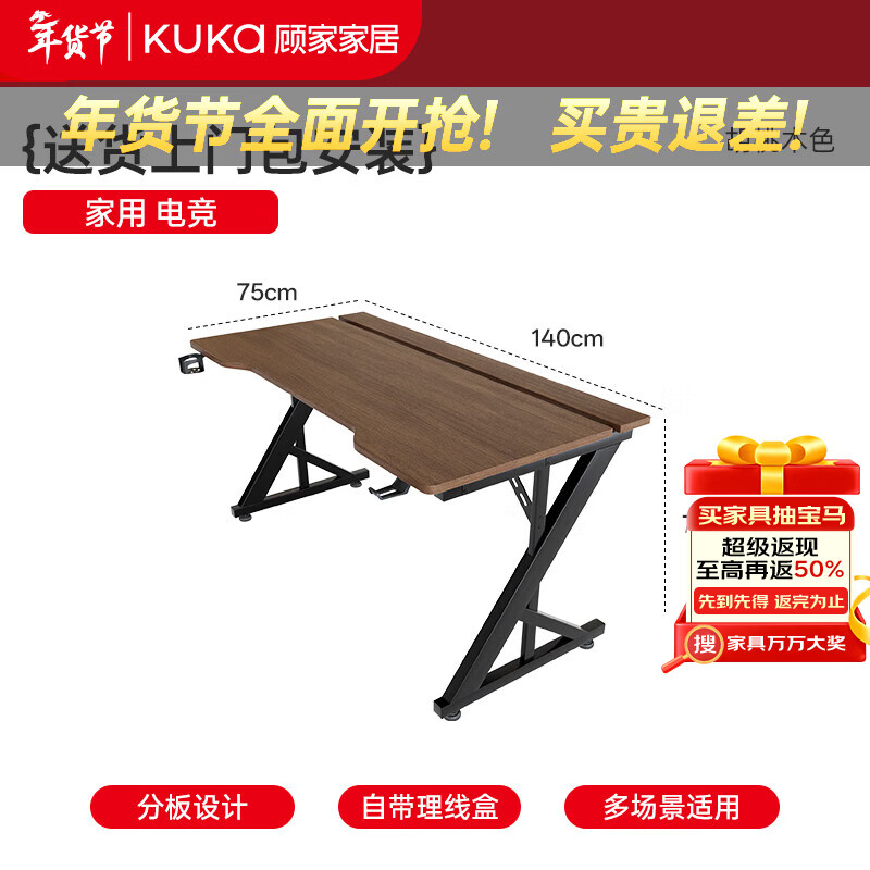顾家家居S3电脑桌台式电竞桌家用书桌学习桌双人办公桌工作台可装机械臂 【S3二段分板】-胡桃色-140*75*75 【送货上门包安装】