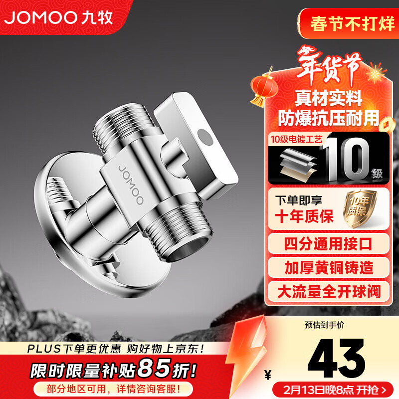 九牧(JOMOO)多功能角阀洗衣机角阀止水阀双控双出马桶伴侣喷枪套装 一进二出大流量球阀74117亮银