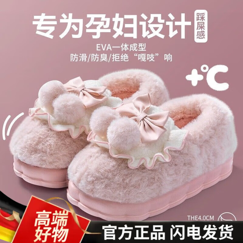 DEATKN德国冬季孕妇棉拖鞋女款2025防滑款厚底加绒保暖室内家居外穿毛棉 粉色 36-37 /正码