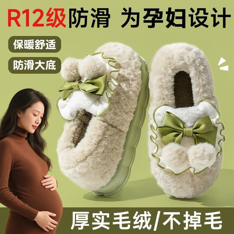DEATKN德国冬季孕妇棉拖鞋女款2025防滑款厚底加绒保暖室内家居外穿毛棉 浅绿 38-39 /正码