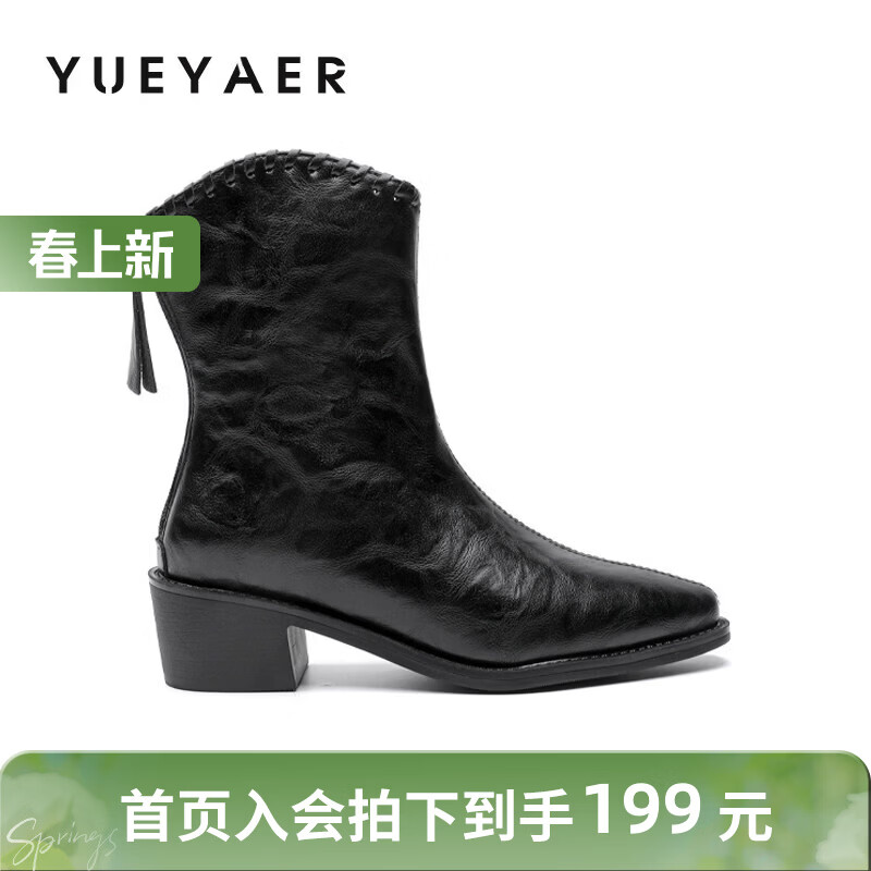 月芽儿皮带扣时装靴短靴女冬季新款法式小个子方头瘦瘦靴 绒里黑色01T 34