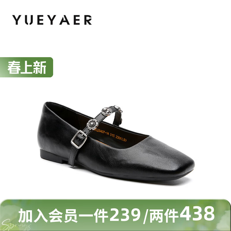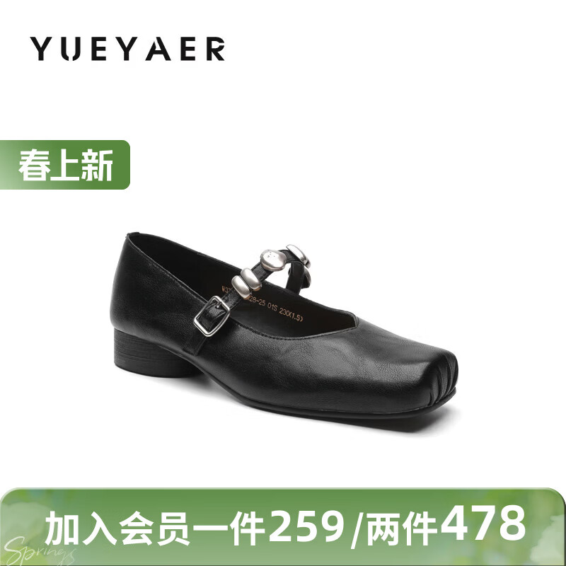 月芽儿浅口单鞋女2026新款法式复古玛丽珍鞋子软底一字带女鞋 黑色01S 34