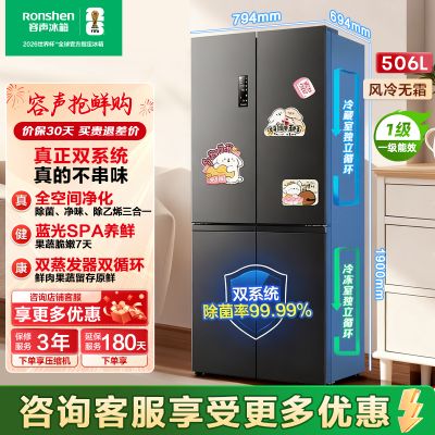 容声(Ronshen)506升四开门十字对开双系统双循环一级变频薄嵌入风冷家用冰箱 BCD-506WD11FP星蕴