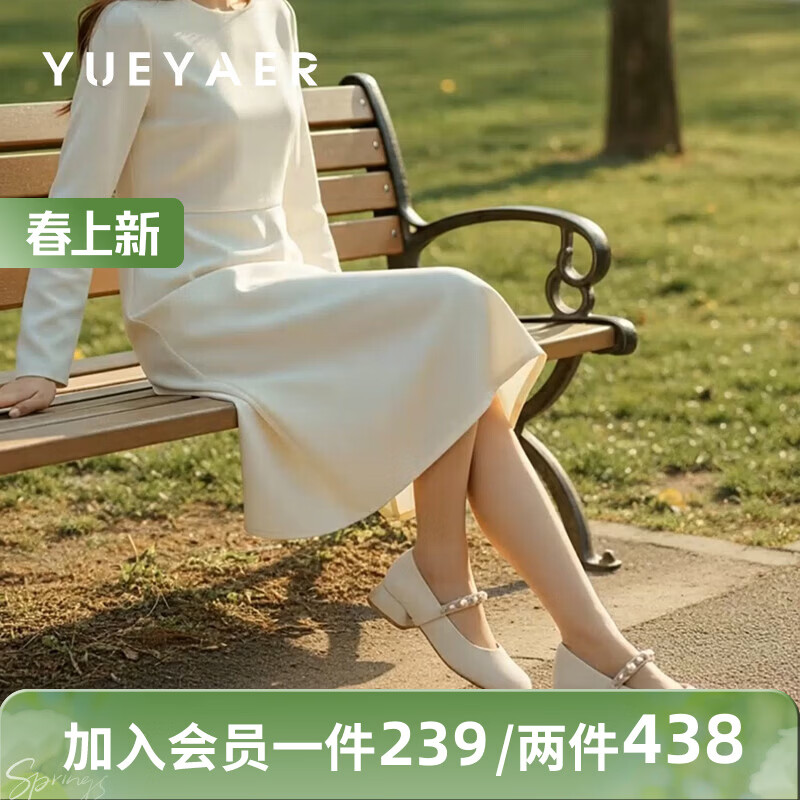 月芽儿法式玛丽珍鞋女鞋冬季季新款复古猫跟串珠配裙子浅口单鞋 米白色14S 34