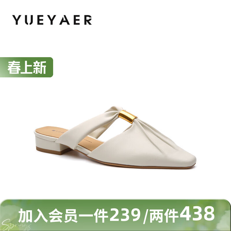 月芽儿包头半拖鞋女款冬季季新款穆勒拖猫跟懒人一脚蹬舒适单鞋 米白色14S 34
